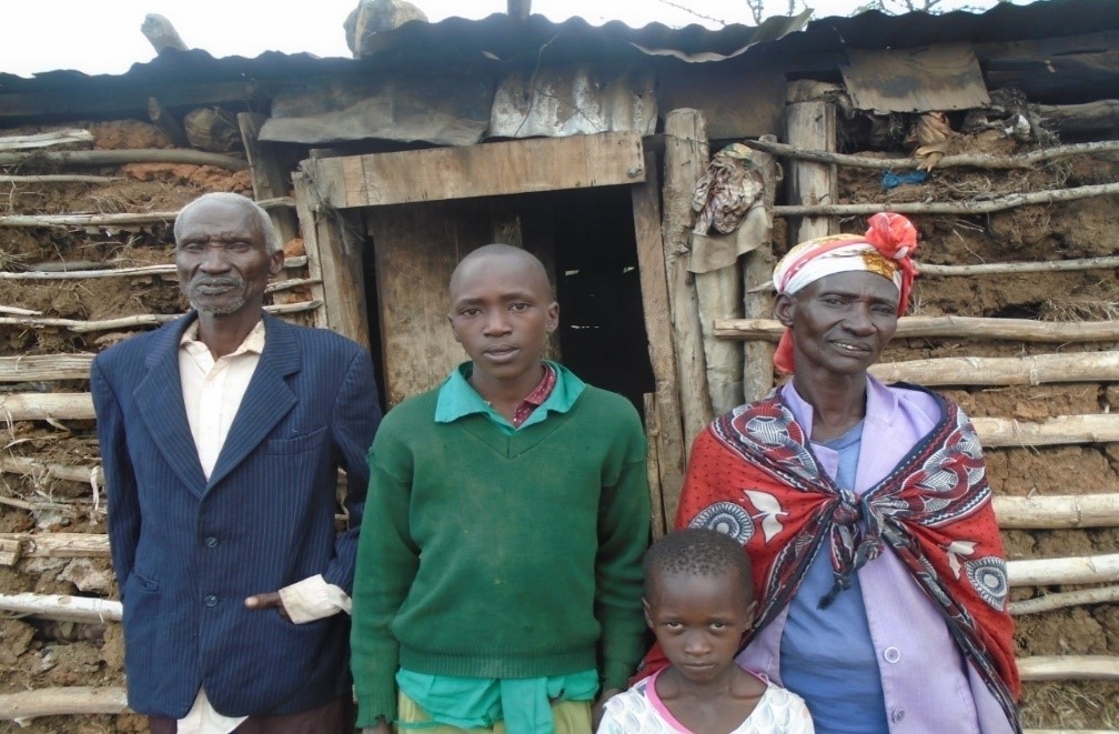 73-year-old Ebeny hails from Kariunga Village in Muramati location of Laikipia County. Unfortunately for Ebeny, life has not given him the luxury of slowing down in his old age, but rather he and his wife have had to take care of three young children while living in a shanty that was nearly collapsing. Of the three children, two are in school while one dropped out. Both Ebeny and his wife do menial jobs earning a meager income.